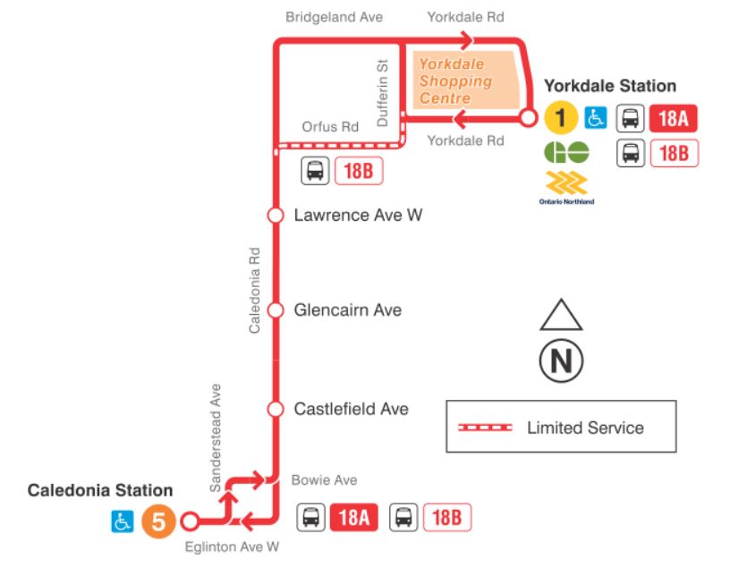 - 47 Lansdowne/18 Caledonia: The Lansdowne route will be split at Caledonia Station with the 47 terminating there northbound, and the 18 Caledonia route number and name are resurrected for the northern part of the route.