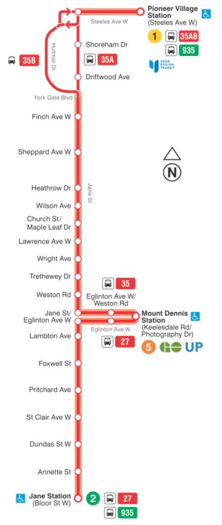 - 935 Jane Express: The express service on Jane will continue to run between Jane Station and Steeles, and it will not divert to Mount Dennis Station.