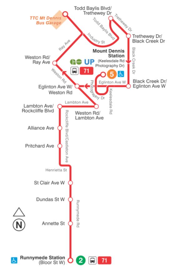 - 71 Runnymede: This route will now serve Mount Dennis Station.