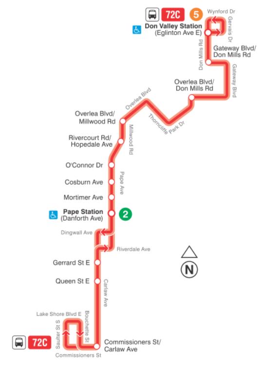 - 72C Pape: This route will now serve Don Valley Station.