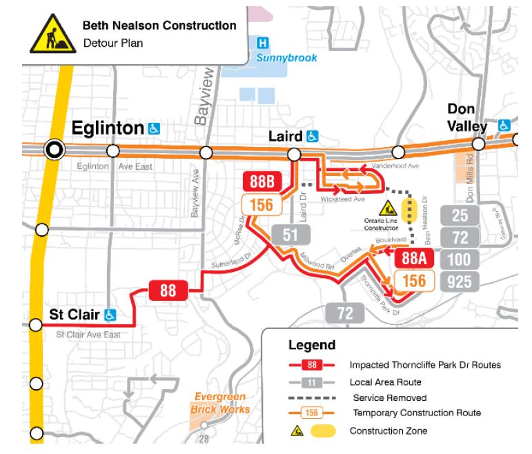 - Service to Thorncliffe Park and to Leaside by 88 South Leaside changed for Ontario Line Construction.