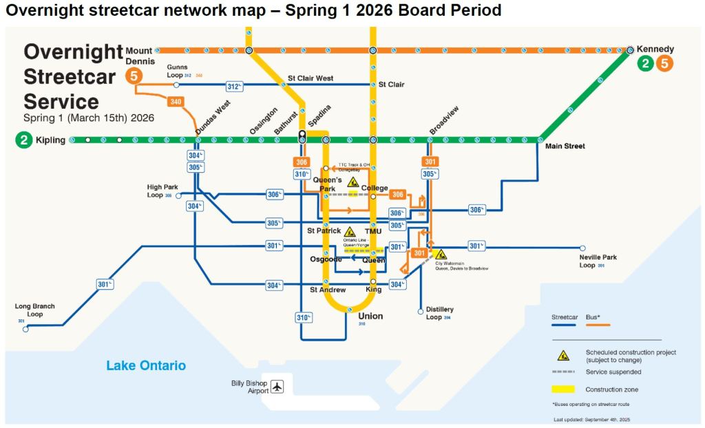 The diversion of 506 Carlton and 19 Bay continues during reconstruction of the Bay/College intersection. This diversion began on March 2.