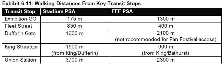 The GO Transit share is expected to be lower for the FanFest area because it is further from Exhibition GO station.