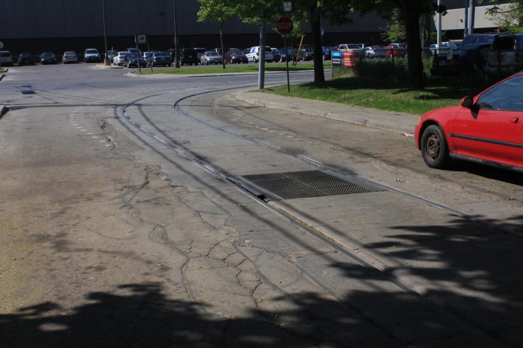 Published May 26, 2010 at 1024 × 683 in Ashbridge Carhouse Routing Options ← Previous Next → Connaught looking S at Eastern This is the intersection of Connaught and Eastern looking south. The metal grate between the rails holds a wheel greaser to minimize noise on this curve. Like Loading...