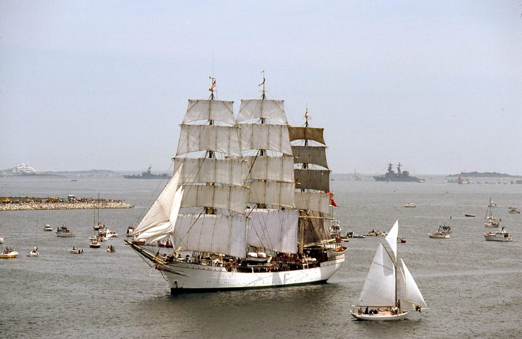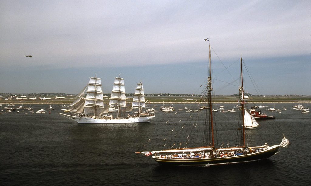 On May 30, 1980, a flotilla of Tall Ships visited Boston Harbour in celebration of the city’s 350th anniversary. Thanks to a friend who worked for a local government agency, I had a pass to watch the event from the Flight Deck of the U.S.S. John F. Kennedy.
