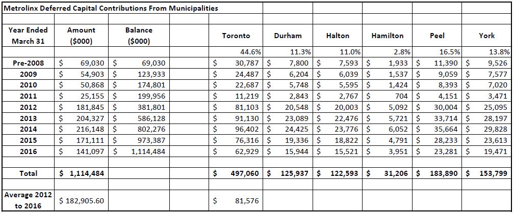 Two weeks ago, I wrote about the receivable on Metrolinx’ books for supposed “municipal contributions” that have not been paid, but instead have been funded temporarily by Queen’s Park. This has been going on for roughly a decade and the bills are piling up, now over a billion dollars.