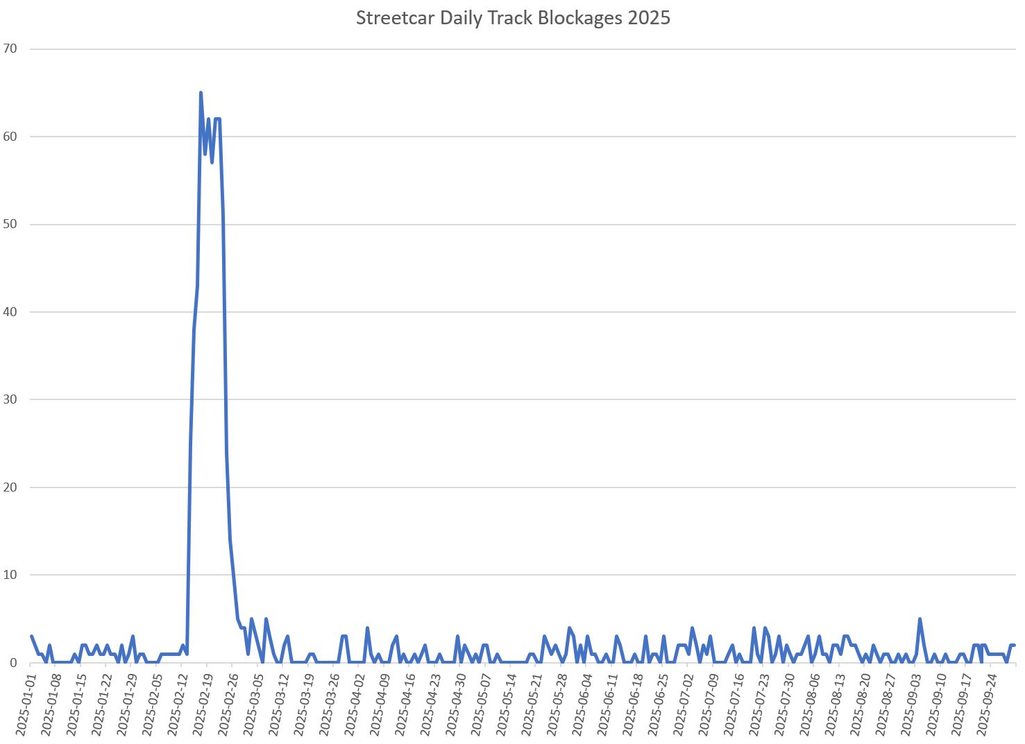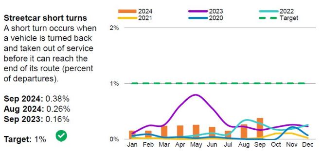 Quite bluntly, service on all of these routes was poor, well beyond the TTC’s own Service Standards, for 2024 and early 2025, and showed little sign of improvement through to mid-year. It will be interesting to compare whatever stats TTC comes up with to the performance shown on charts here.