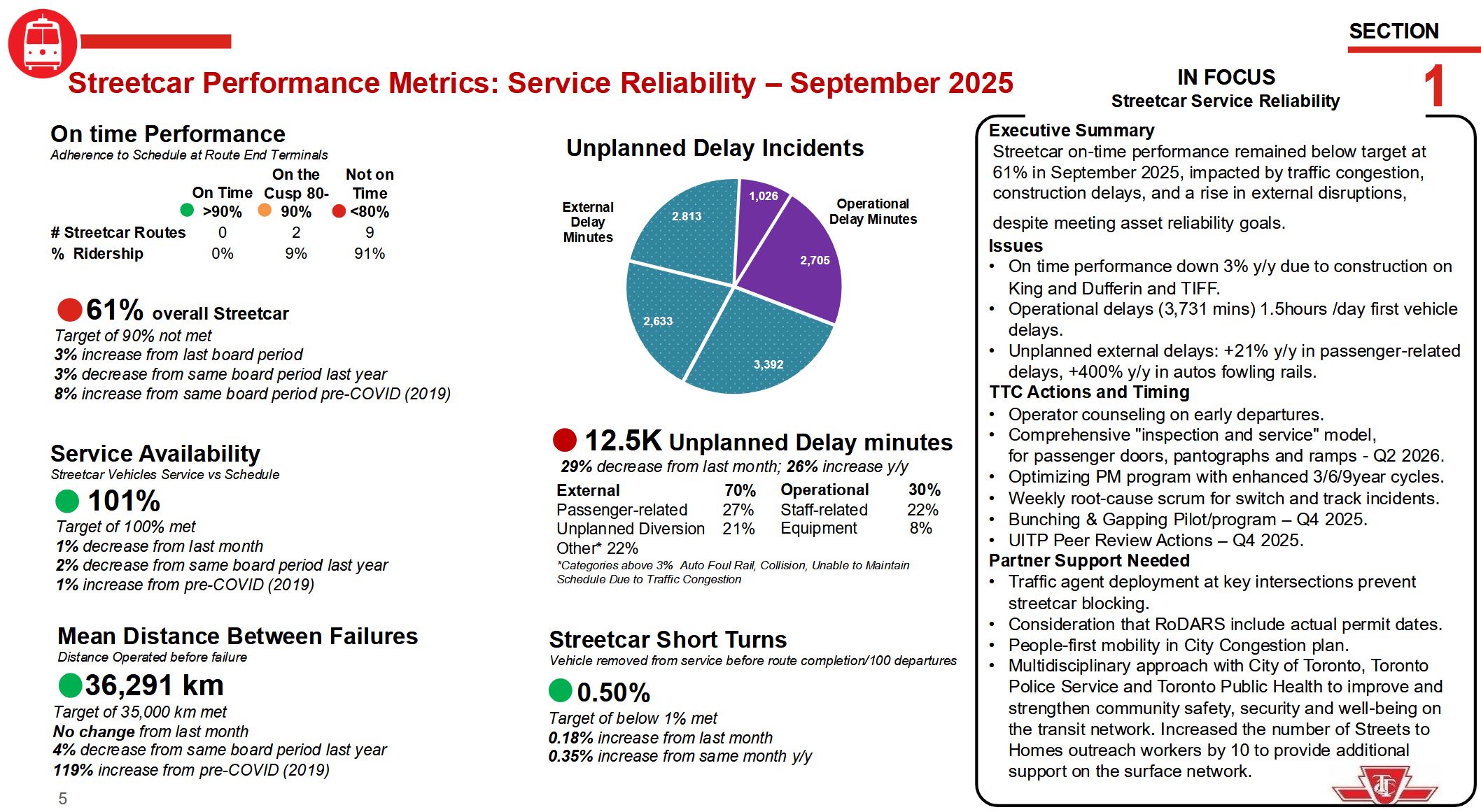 Last March, the TTC expanded a pilot to improve service reliability on 11 key bus and streetcar routes. Working through the Transit Control Centre, uniformed Supervisors have been deployed mid-route to ensure our service frequency meets customer expectations and that we reduce the bunching and gapping of our buses and streetcars, which is a source of frustration for riders.