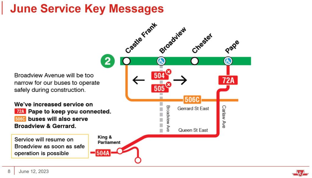 However, the rate of route changes persisted well beyond the heart of the pandemic and threatens the credibility of transit service on major corridors leaving riders constantly wondering where their streetcar or replacement bus might be. Some changes occurred without the planned work actually taking place, or work started and ended later than announced (sometimes much later as in the never-ending KQQR project).