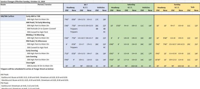 - The 310 Spadina night service appears to have escaped the cutback from a 15′ to a 30′ headway. The January schedules show service every 15′.