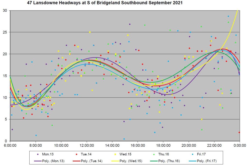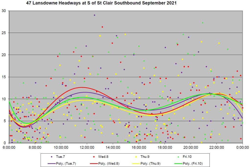 Crowding levels reported now are all day, all route, all week values, and they hide problem areas in the system. The TTC still does not break out reports on crowding or service quality by route, location or time of day. Their “On Time Departure Report” has not been updated in several years, and although there is still a link to it from the Customer Service page, the link is dead.