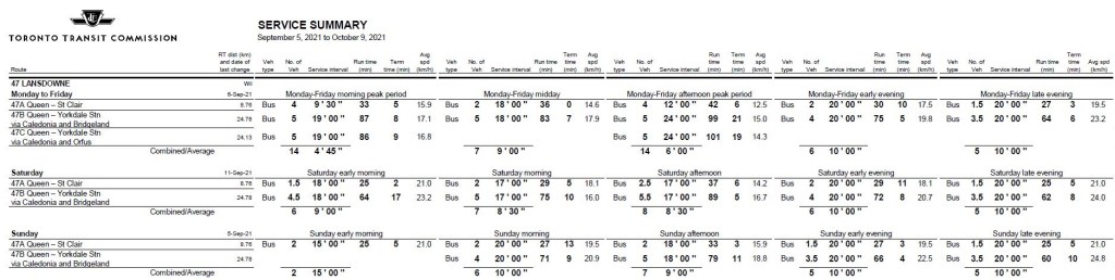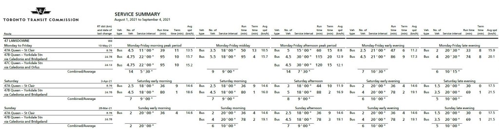 Although the TTC plans to return to 100 per cent service, this does not mean that the service patterns will match those of early 2020. Demand patterns have changed both in daily patterns (peaks or their absence) and location (heavier demand to suburban jobs in sectors where work from home is impossible). To the extent that peaks are smaller or non-existent, this works in the TTC’s favour by allowing a higher ratio of service hours to driving hours (buses spend less time, proportionately, going to and from garages). This also, of course, spreads out demand and can reduce crowding.