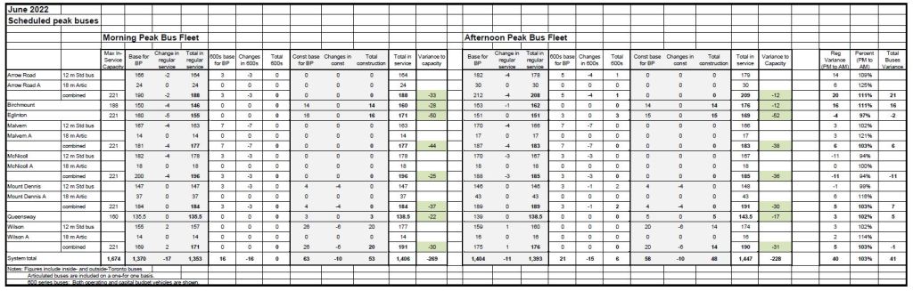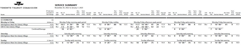 Many of these routes show very irregular service and one cannot help asking how this affects ridership. The TTC talks about improving service on major routes with interventions such as reserved lanes, but seems incapable of managing headways on relatively minor routes. There is a parallel here with declining maintenance quality where issues with the “little things that don’t matter” start to bleed into the major services and the system drives away as many riders as new services might attract.
