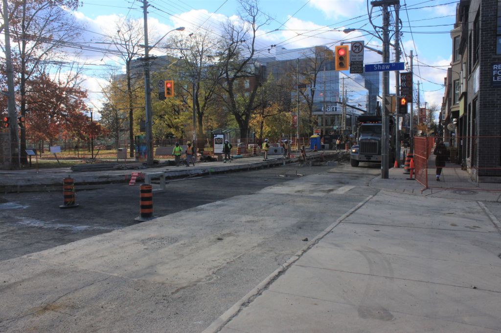 The track replacement project from Bay to Fennings (east of Dovercourt) continues, much to the dismay of local merchants on a street that, by the original schedule, would have been clear of construction two months ago.