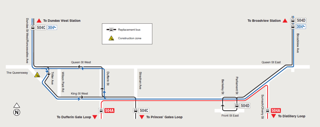 All photographs in this article are by the author. The diversion map for 504 King is by TTC.