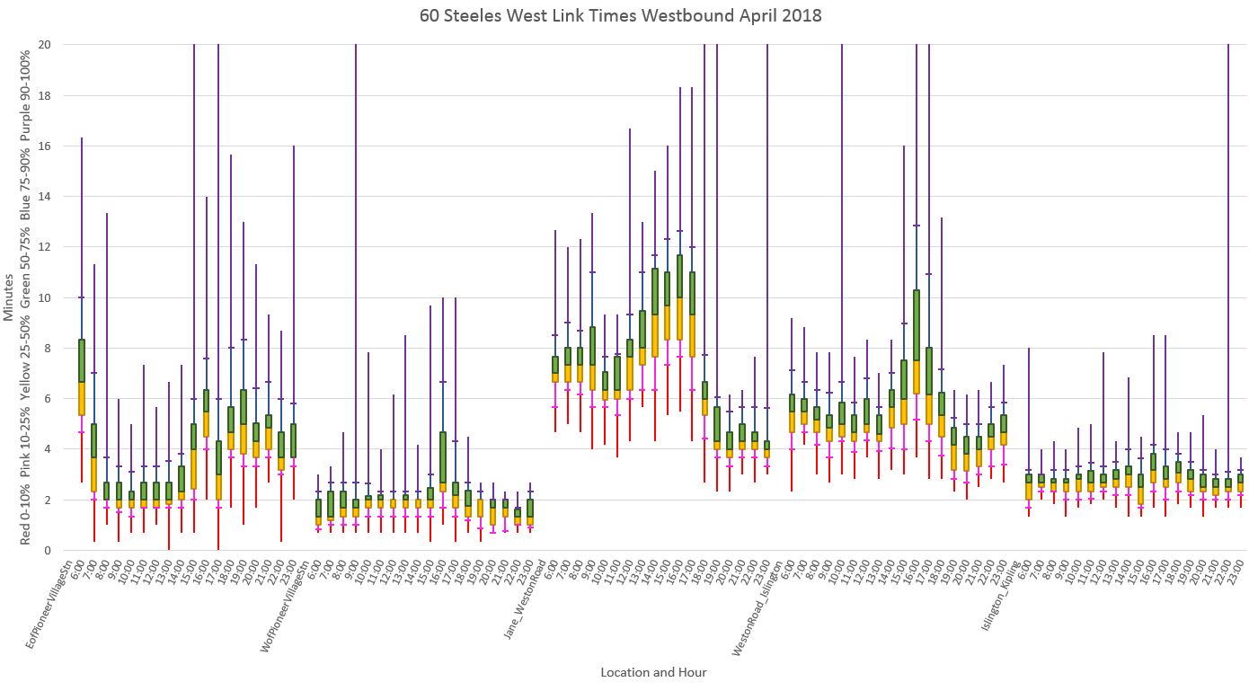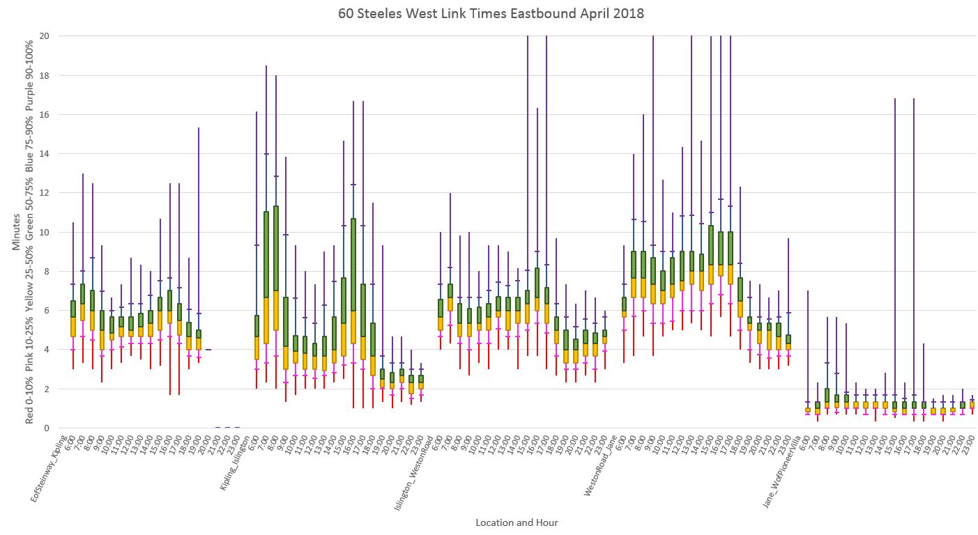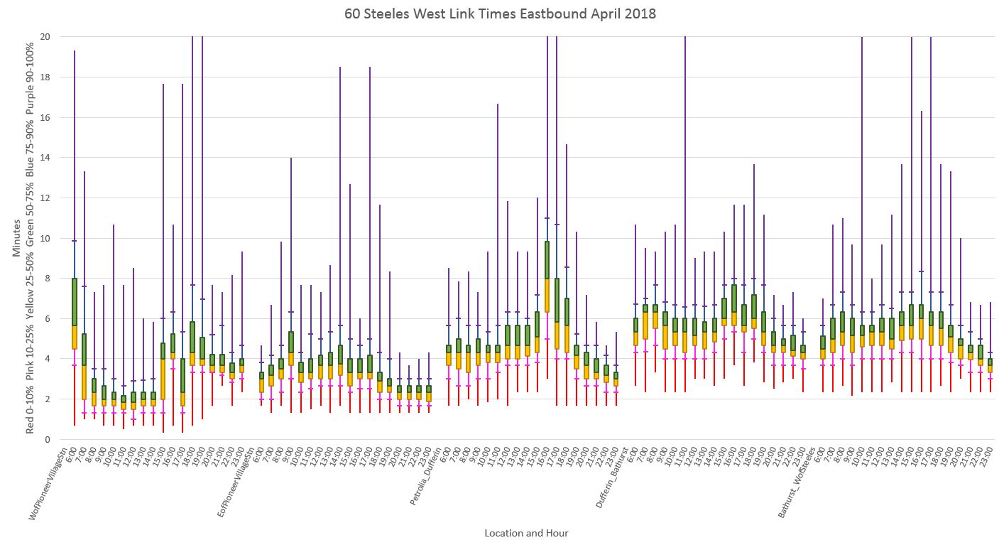 The TTC argues that service is not really that bad because they have a large number of unscheduled extras (aka “RAD” or “Run As Directed”) buses that do not show up in vehicle tracking records. Leaving aside the obvious need to track all service, not just the scheduled buses, this does not explain why buses run so close together so much of the time. These are tracked vehicles that have a schedule that should keep them apart.