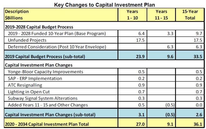 TTC Capital Budget 2020-2029 and 15 Year Plan (Updated)