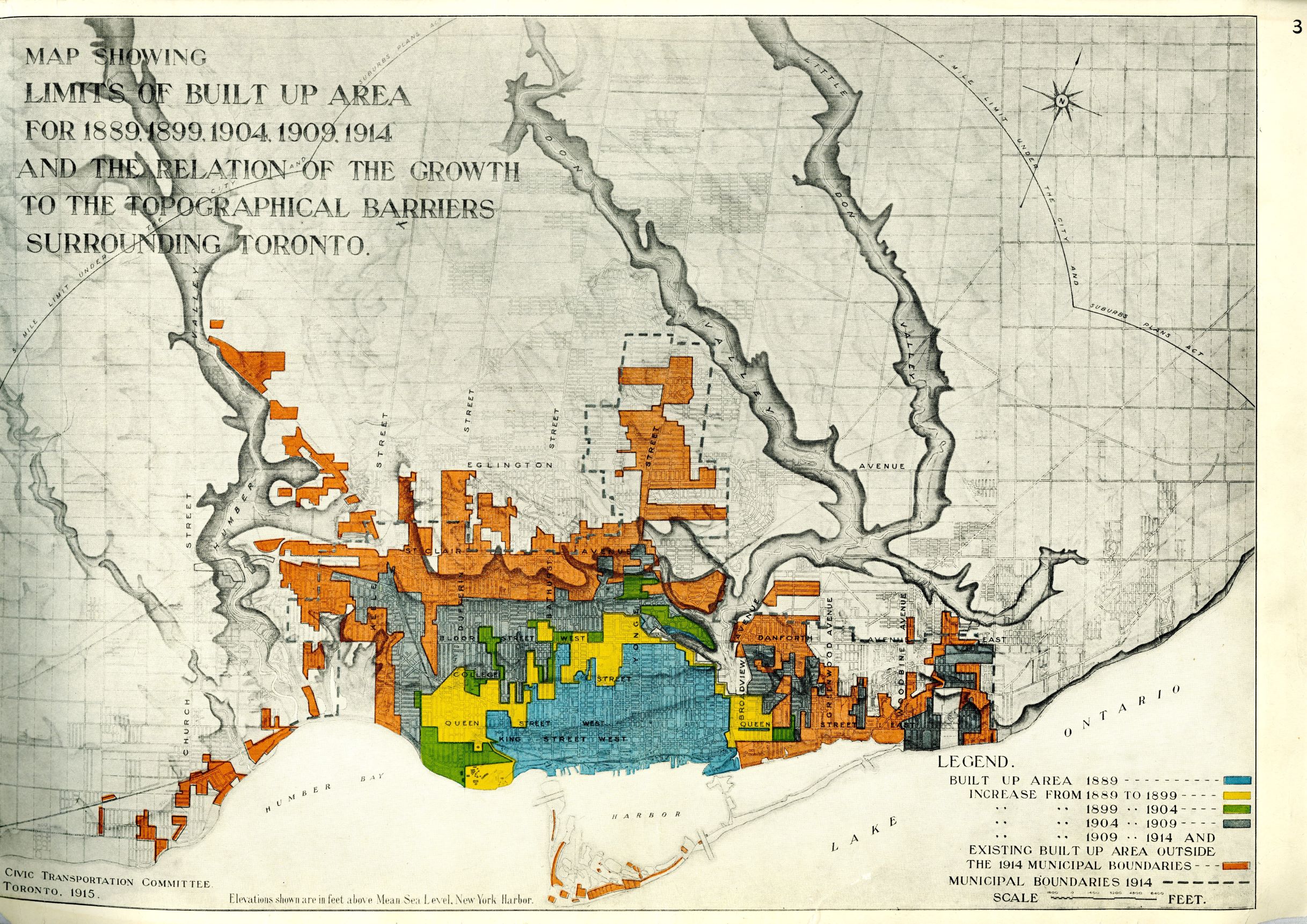 The early city was very compact. It evolved as an industrial centre along the lake and railways, two prime transportation systems. Jobs were along railway corridors notably Lake Shore East and West, and to the northwest through Weston.